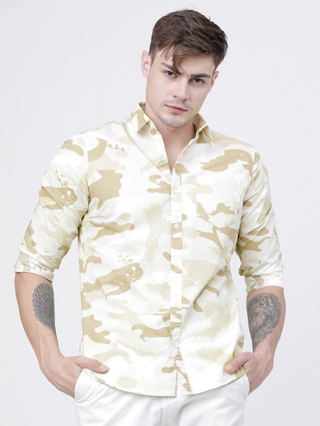 Men Slim Fit Printed Cut Away Collar Casual Shirt