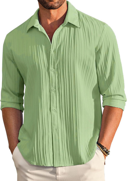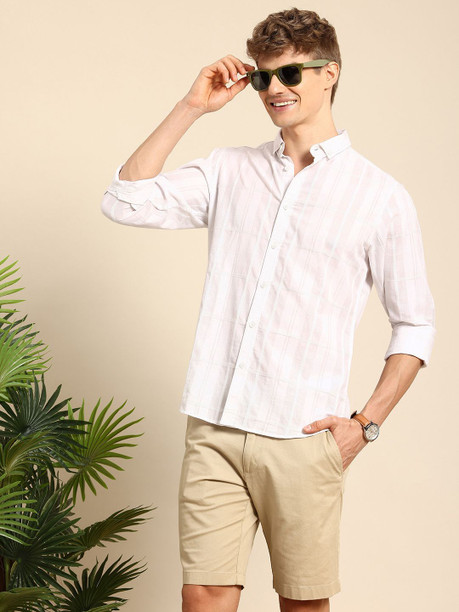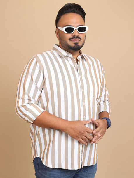 Men Regular Fit Striped Button Down Collar Casual Shirt