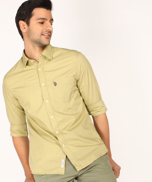 Men Regular Fit Solid Spread Collar Casual Shirt