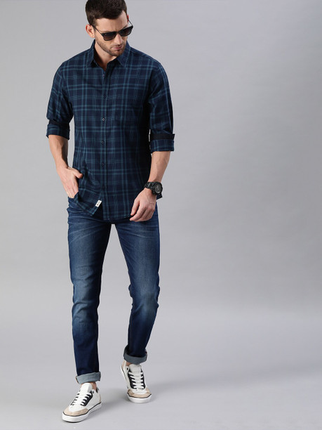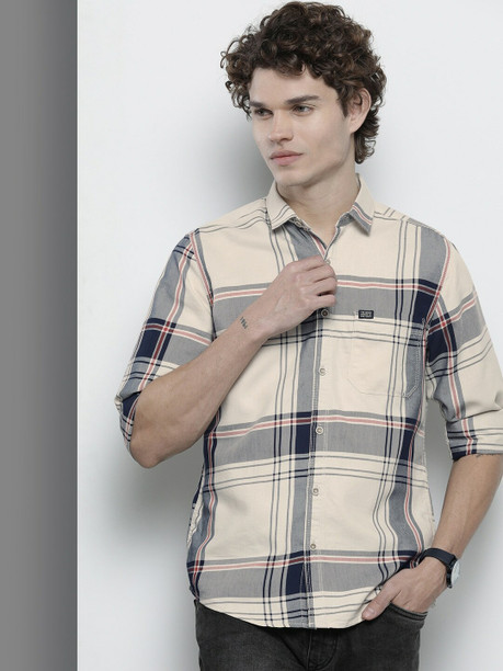 Men Slim Fit Checkered Spread Collar Casual Shirt