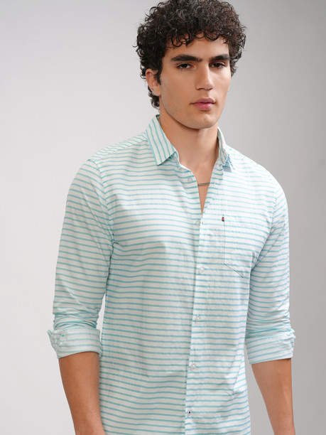 Men Slim Fit Striped Spread Collar Casual Shirt