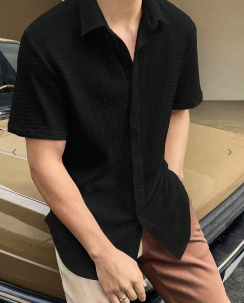 Men Regular Fit Solid Spread Collar Casual Shirt