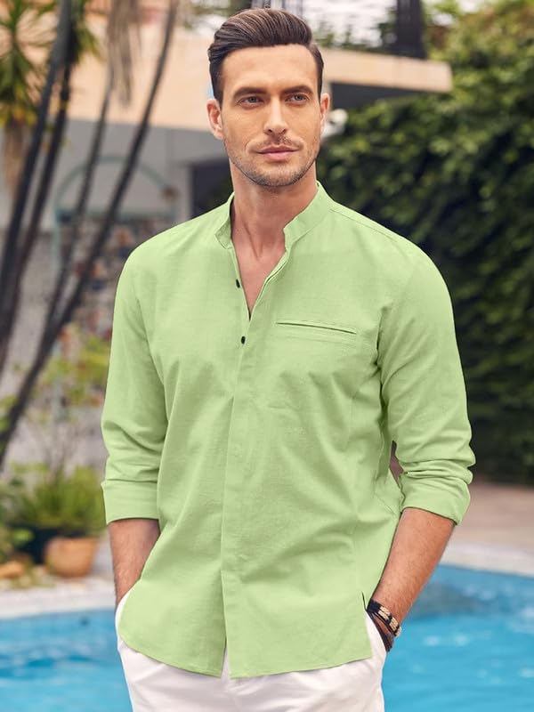 Men's Short Sleeve Linen Shirt Regular Fit Casual Summer Beach Shirt with Pocket