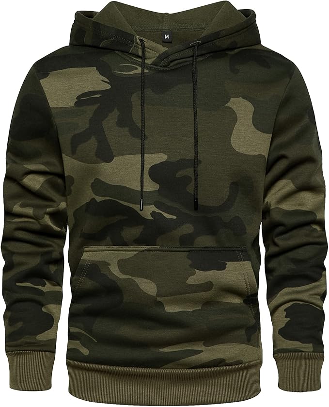 Mens Hoodies Pullover Camo Hooded Sweatshirt Patchwork Top Long Sleeve Hoody Casual Tops with Pockets