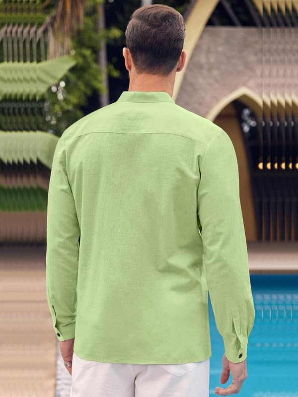 Expertly Tailored: Exceptional fabrics and expertly tailored fits are important touches of this beach shirts. Unique texture fabric is distinctive and adds to a casual look. Relaxed cuban collar, long sleeve, chest pocket, button cuffs, straight hem add personality to your looks.